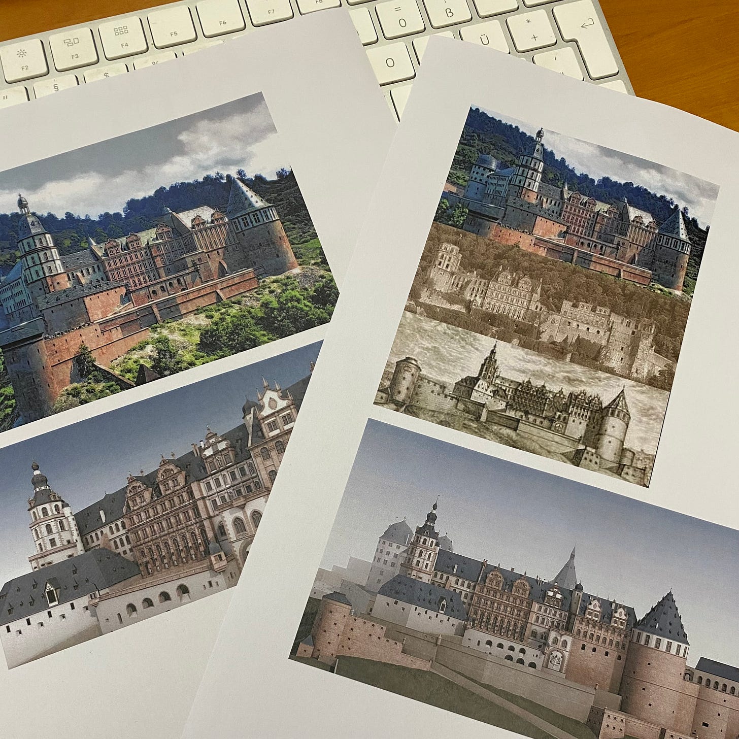 Damit wir nun aber nicht übermütig werden oder gar leichtsinnig das Schreibtempo erhöhen – schließlich kann niemand wirklich wollen, dass der Erstentwurf noch in diesem Jahr beendet wird –, befasst sich die Kaps ausführlichst mit Recherche. Oder mit Prokrastination. Je nach dem wie man es sehen oder benennen will. Denn es ist nun wirklich nicht so, dass das Heidelberger Schloss etwa eine tragende Rolle in der Geschichte spielen wird. Aber das soll uns nicht davon abhalten, dass wir uns intensiv damit beschäftigen, wie und wann und warum es zerstört wurde und vor allem wie es in seiner einstigen Pracht und Opulenz aussah … bevor wir allerdings noch weiter abschweifen und uns in romantischen bzw. kunsthistorischen Schwärmereien ob der berühmten Ruine ergehen – hier der Zwischenstand bei den Wortklaubereien: