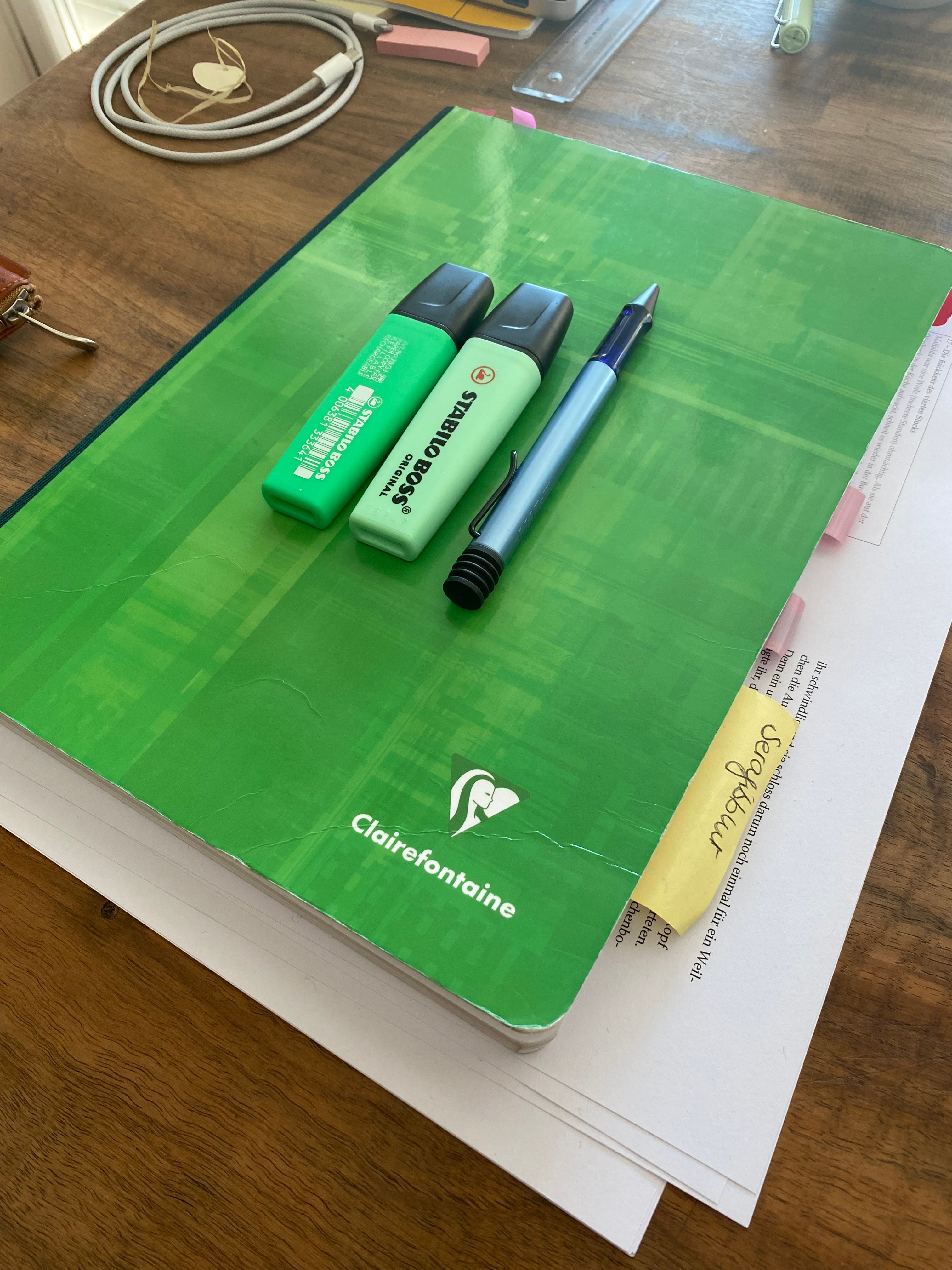 Die Bilder hierfür sind auch wirklich während des Schreibens des Bureaus entstanden und zeigen wie etwa oben einen der wohl zwanzig Lamy Kugelschreiber der Kaps sowie das Hauptnotizbuch, das insbesondere ab dem ernsthaften Beginn des Schreibens an der Geschichte seine Dienste tat.